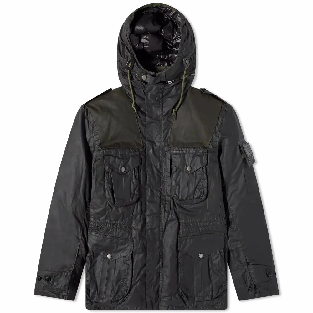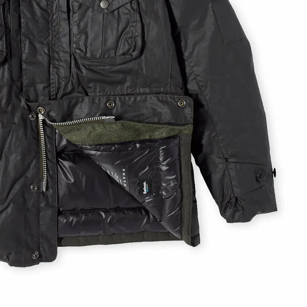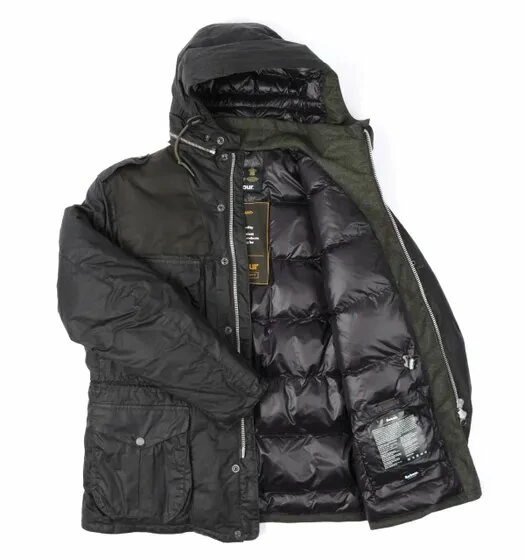 The Gold Standard jackets represent the culmination of 125 years of heritage, combining luxurious trims, modern styling and innovative fabrications. The Barbour Gold Standard Canna Wax Jacket uses Barbour’s legendary wax cotton for its outer shell. The time-tested material is extremely durable and weather resistant. The lining of the jacket is made from Barbour’s FibreDown insulation an innovative and lightweight microfibre fill designed to keep you warm and protected from even the harshest weather conditions. Not only this, but the material is also water-resistant which means it keeps its water-resistant properties even when wet, and dries very quickly. The jacket features military-inspired details such as four-pocket setup on the front with Barbour branded metal snap buttons and epaulettes on the shoulders. It also includes an extra pocket on the side with Barbour branded patch. Classic Barbour details like a heavy metal zipper with storm flap closure. The jacket come with a detachable hood that is also insulated for those especially chilly days.