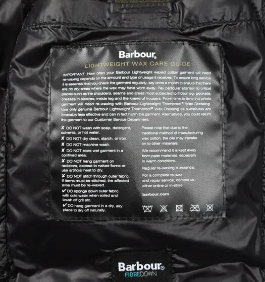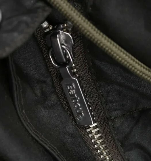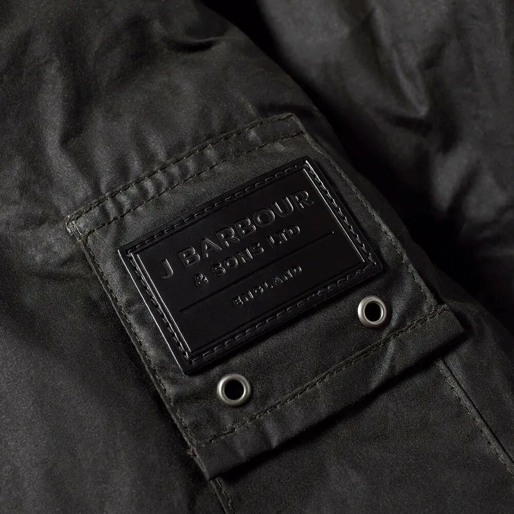 Velcro flap closure pocket on sleeve with Barbour branded patch
