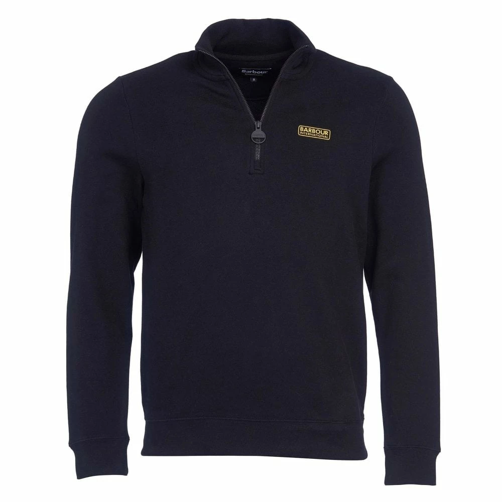 Mid weight half zip sweatshirt in Black by Barbour International,perfect for the transitional months.