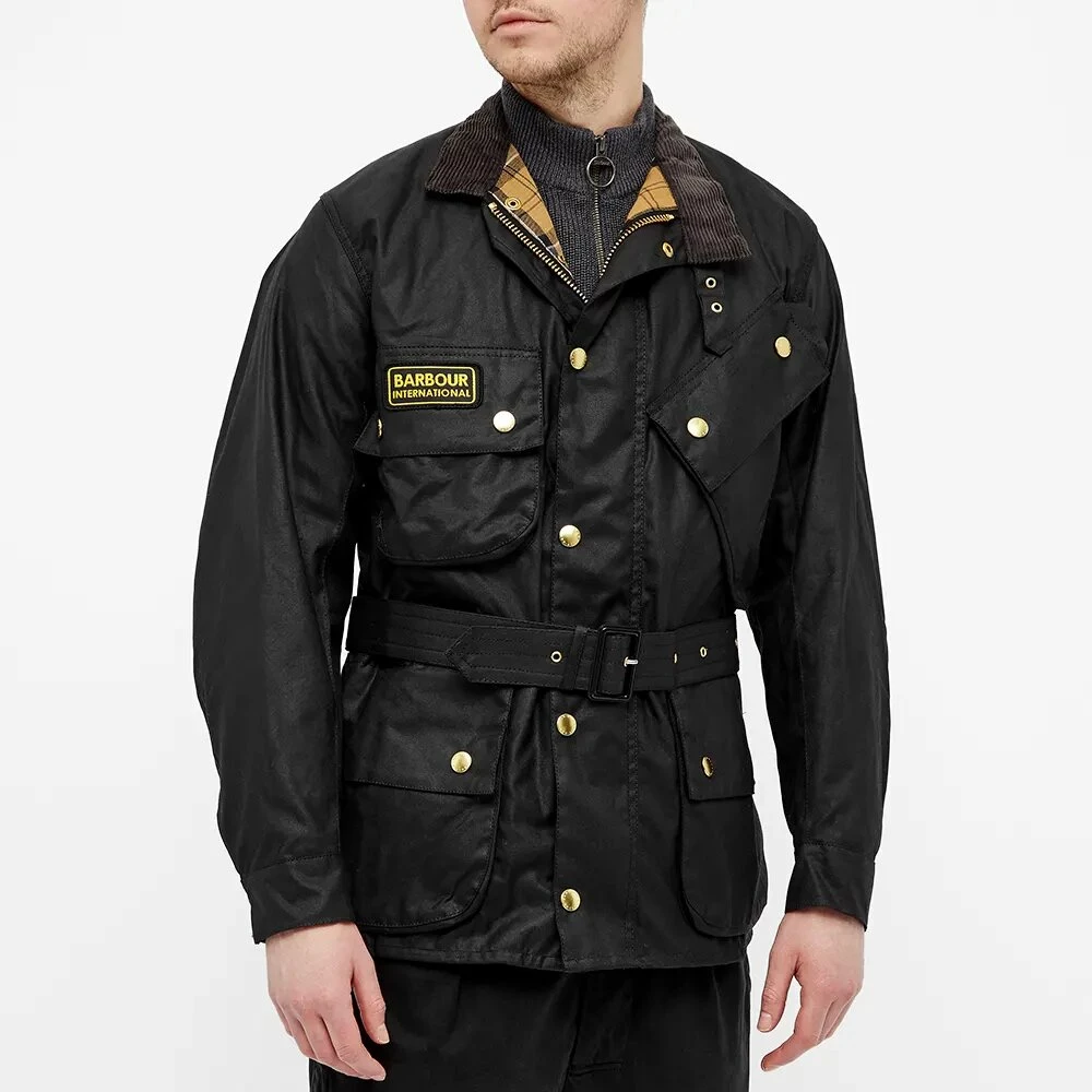 Uno de los estilos más icónicos de Barbour, el International se creó en 1936 y se convirtió en la chaqueta de motociclista preferida en los años 50, 60 y 70. Manteniéndose fiel a su herencia, esta edición reelaborada está confeccionada con algodón encerado Sylkoil pesado con un acabado mate, mientras que los detalles tradicionales incluyen una correa para el cuello con cierre de hebilla, puños con tachuelas, cinturón y los cuatro bolsillos con solapa de la marca registrada.