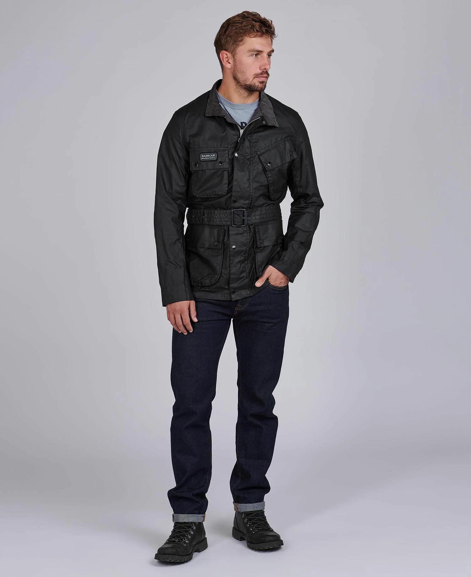A true icon of menswear with a modern twist, this version of the original Barbour International jacket has a slimmer cut from our lightweight 4 oz waxed cotton for the perfect summer feel. All the classic features of the original are present, from the belted waist to the angled ‘map pocket’, and it is updated with tonal embellishments for a sleek and modern feel, all completed with the iconic Barbour International logo badge on the right chest pocket.