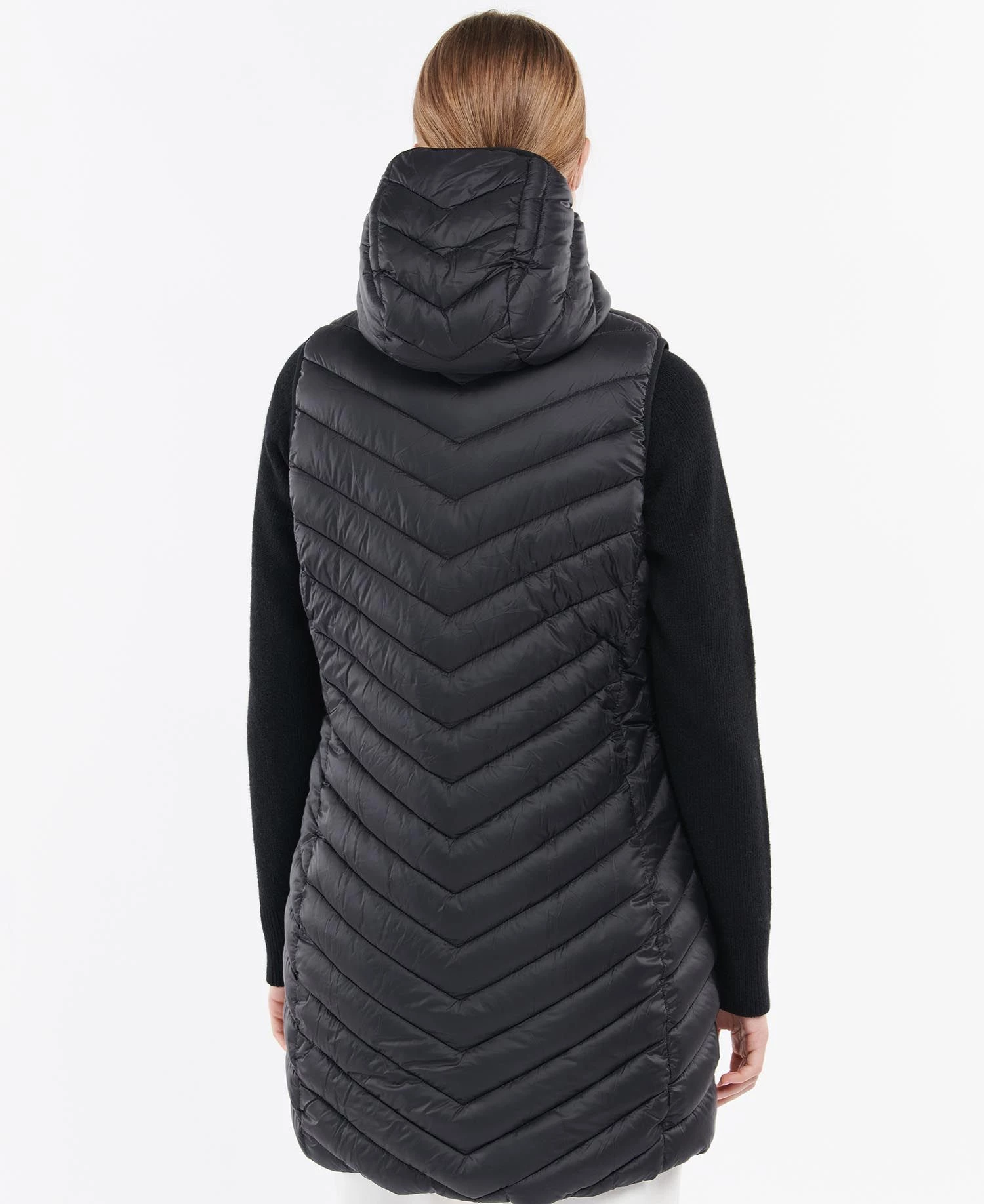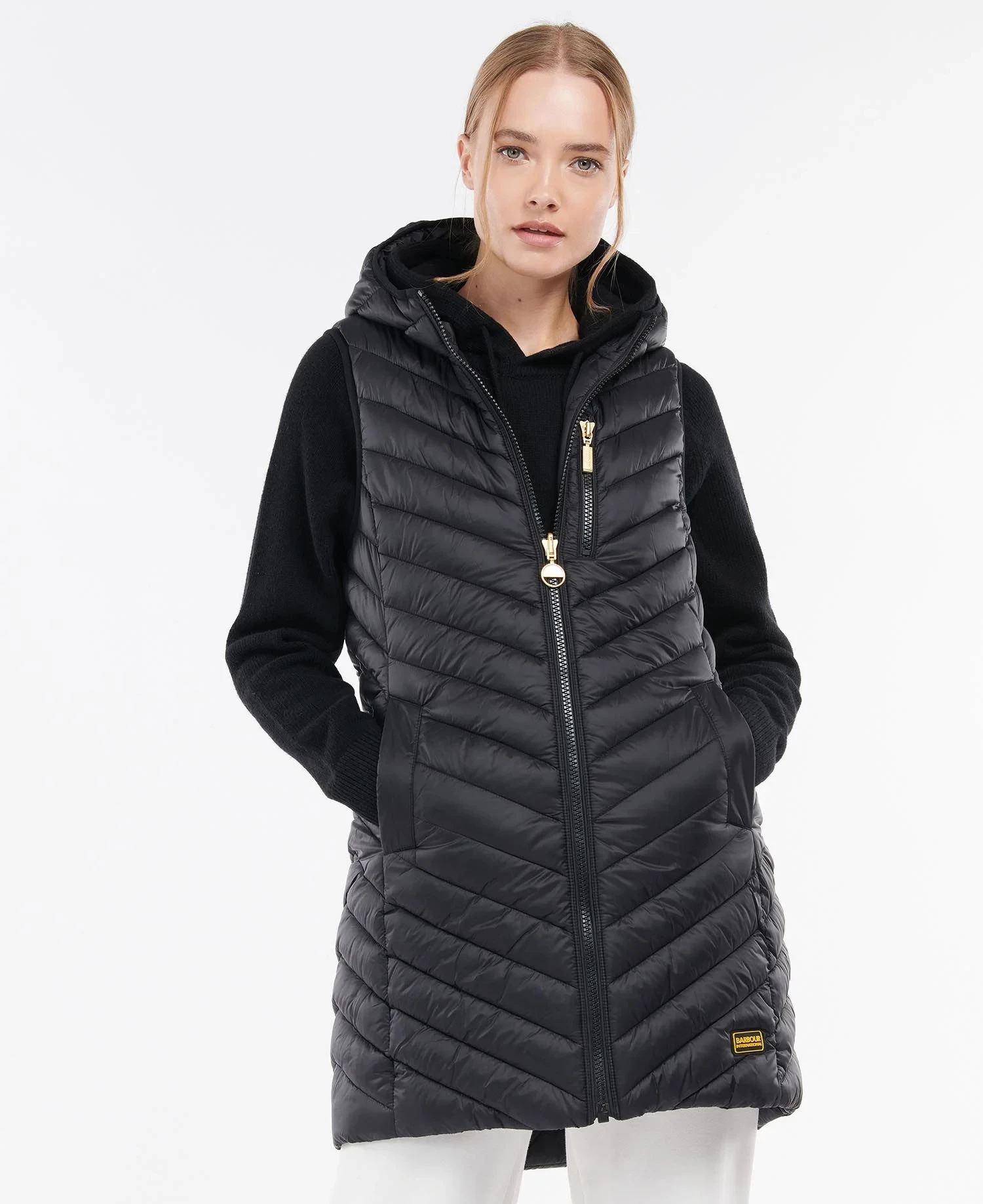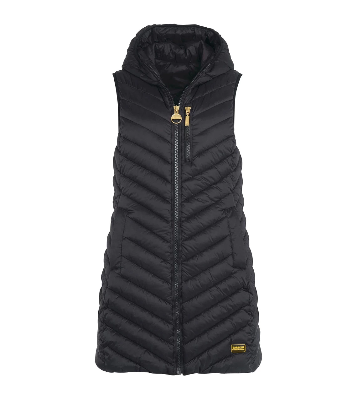 Longer length reversible gilet designed with a fixed hood. Featuring a baffle outer, with a reversible side, concealed stud pockets for handy storage space, a zip closure, finished with branding to the left hem. Perfect for the transition season.