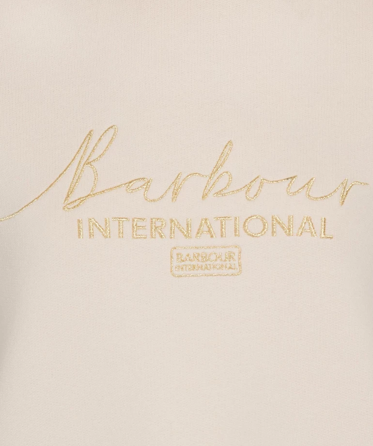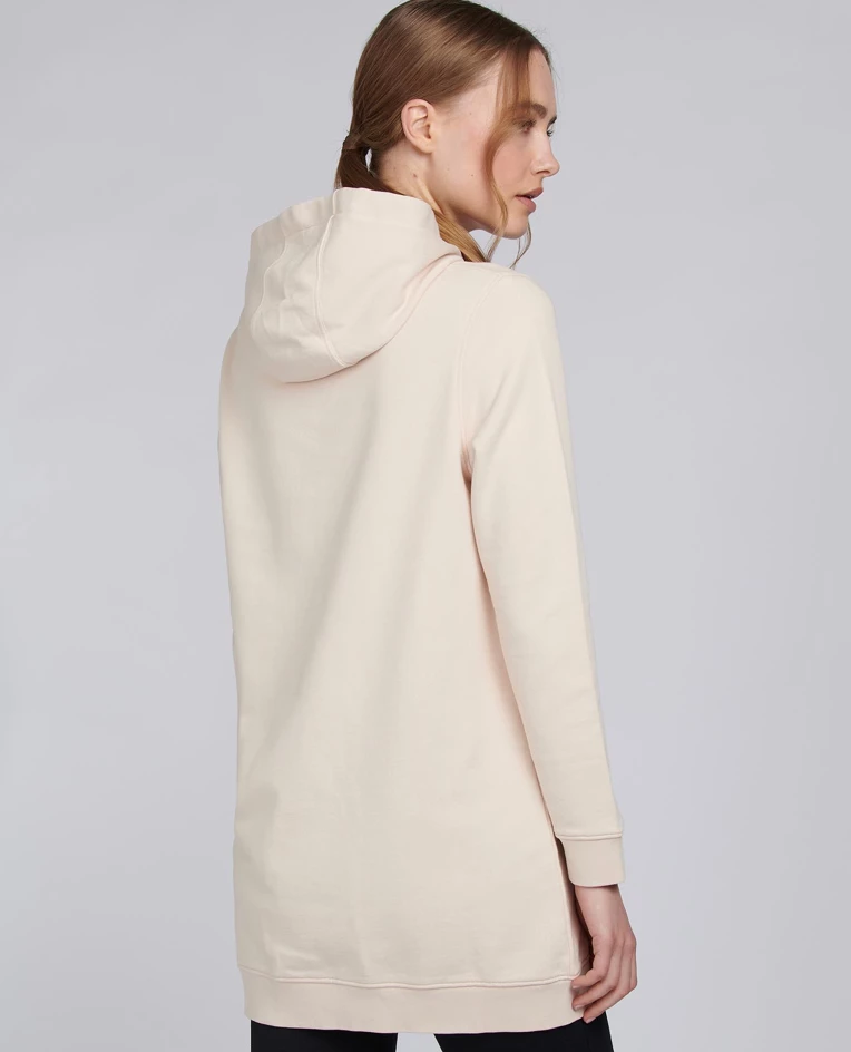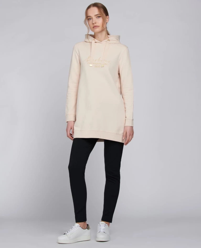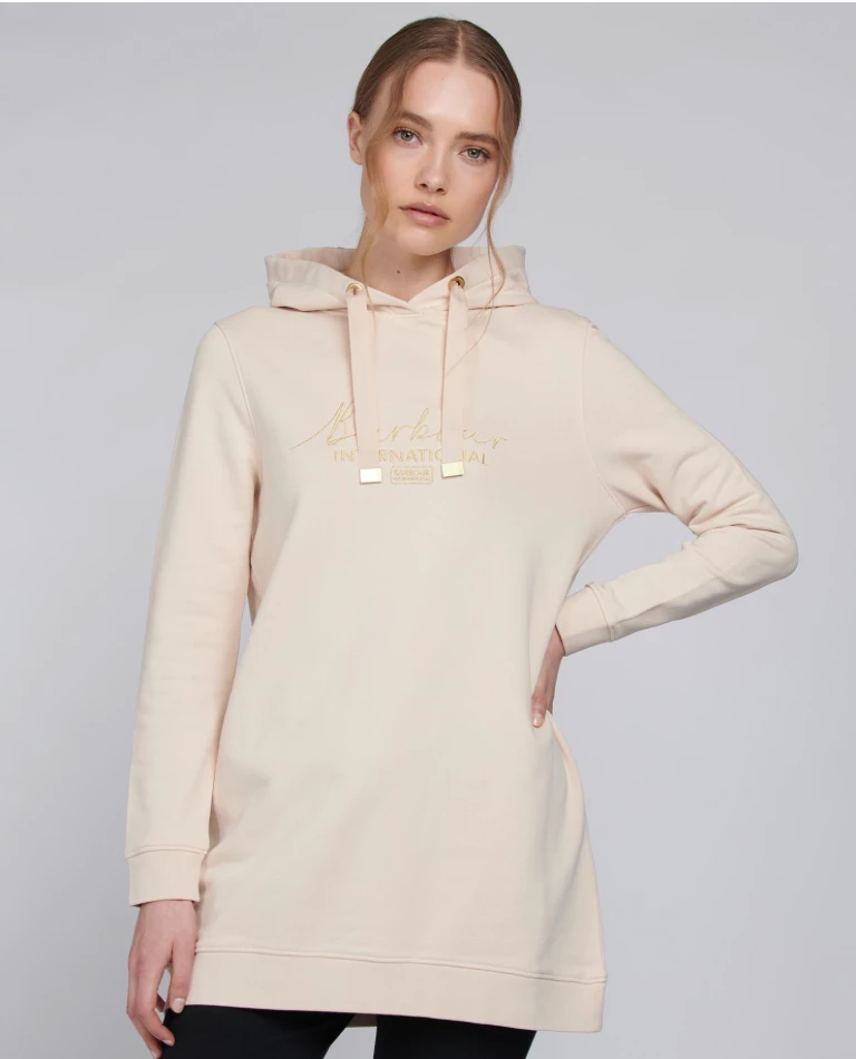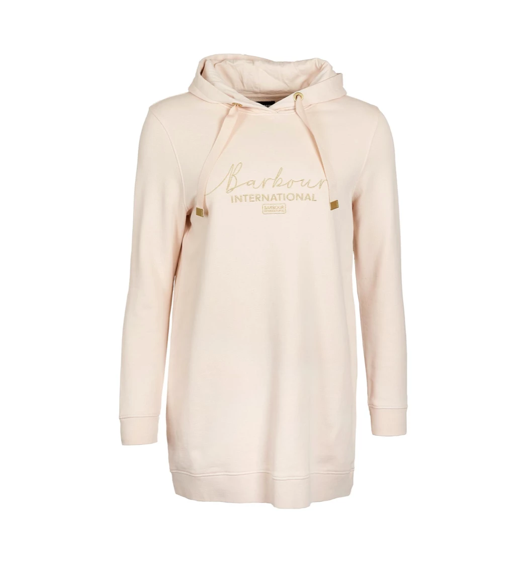 Oversized longline sweater designed with the Barbour International embroidered graphic to the chest, a grosgrain tape drawcord and a fixed hood, finished with a small silicone badge at the back. Perfect to pair with our Ragdoll Black workout leggings for a comfy everyday look.