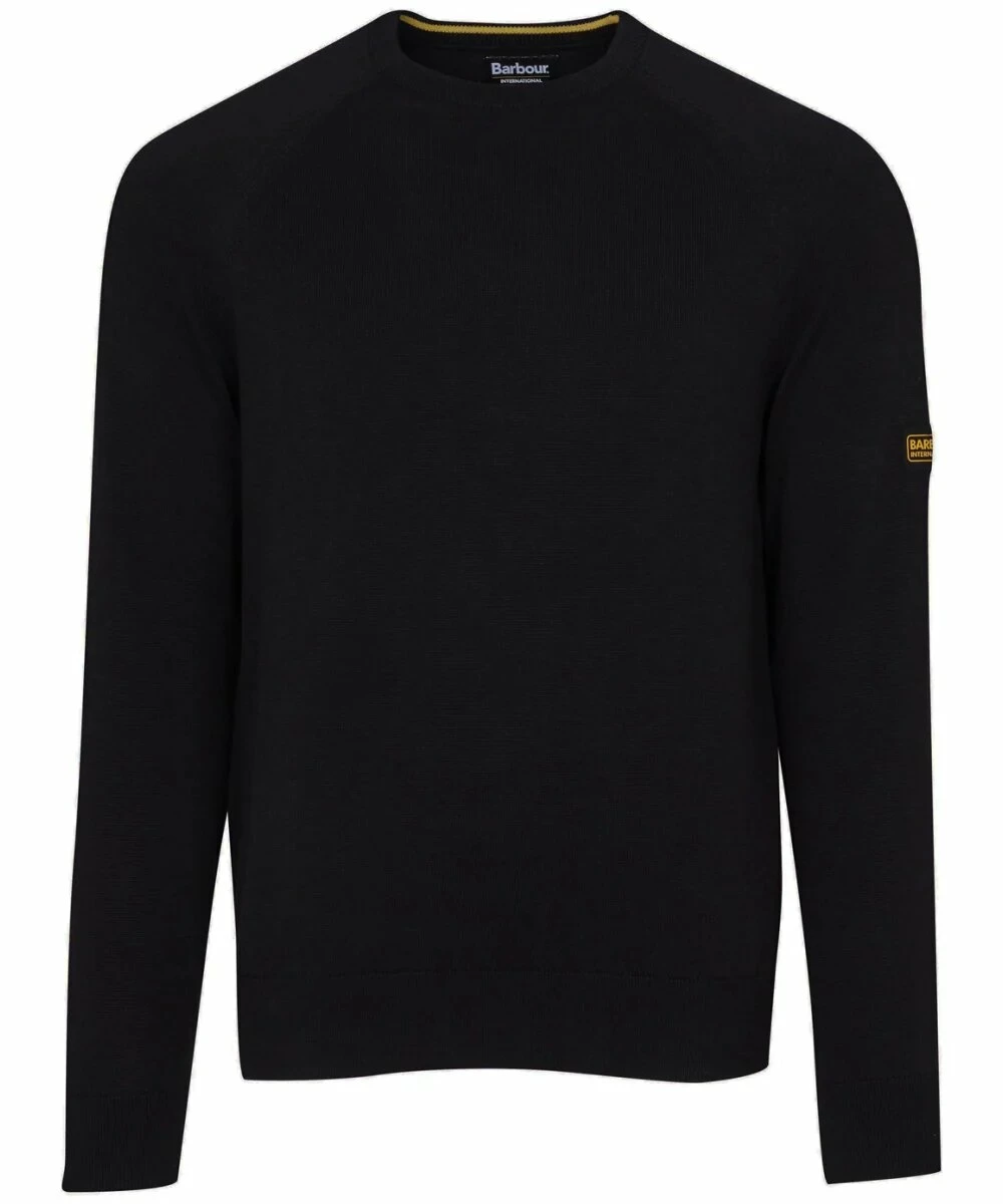 A true wardrobe essential to wear all year long, this Barbour International Men’s Cotton Crew Neck Sweater is knitted from durable cotton with a soft feel for all-day comfort. Featuring raglan sleeves and ribbed trims to the neckline, cuffs and hem, it is completed with a Barbour International logo patch to the left sleeve.