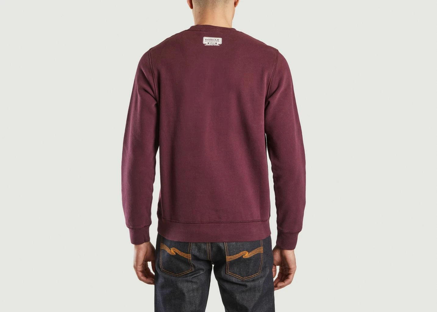 Barbour International’s Duke Origin Sweatshirt in burgundy is made of 100% cotton. It features a motorcycle-inspired graphic on the chest, round neck, long sleeves, straight cut, ribbed cuffs, neckline and hem. For a casual sportswear look, go for the Duke sweatshirt from Barbour! This basic with a standard cut and a sober color will be easy to wear and to match everyday.