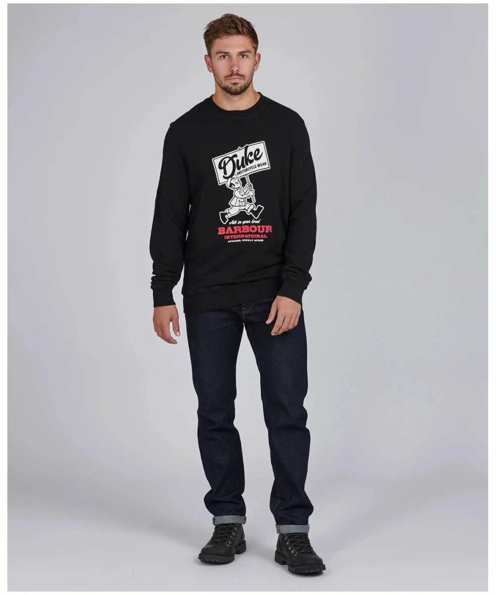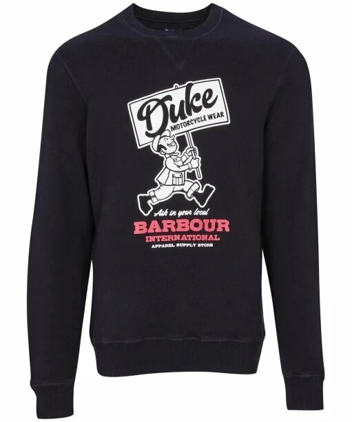 Add warmth and style to your look with the Barbour International Famous Duke Men’s Sweater. Made from 100% cotton for comfortable wear, the sweater is perfect for layering and features a large Barbour International graphic across the chest for an eye-catching look. Complete with ribbed trims at the cuffs, collar, and hem, this promises to be a style for many seasons.