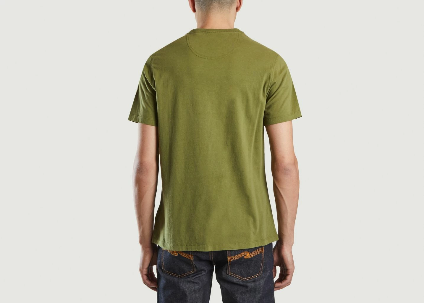 Olive colored T-shirt, brand logo printed on chest, is made from 100% cotton. Ribbed details on the collar, round neck, short sleeves. We love this perfect piece for summer time! With its sober color, you can match it with straight cut jeans and a pair of ankle boots.