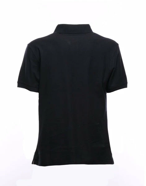 Basic and elegant cotton polo t-shirt, particularly for the processing of the pique fabric that gives freshness to the garment. With wide ribbed shirt collar and three buttons on the front, embroidered logo. Composition: 100% cotton Color: Black