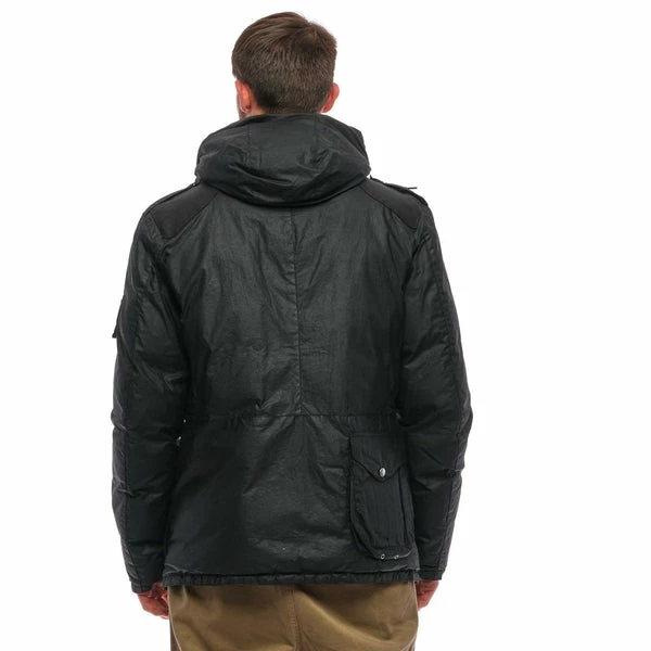 Typical English hunting jacket for men, model with 5 pockets, particular for the typical shiny hunting fabric. Hood and logo on the shoulder. Composition: 100% cotton 100% polyester Color: Black