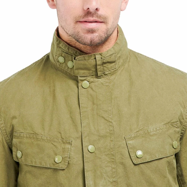 A light rework of the iconic Duke Jacket, this seasons Summer style is a perfect layer for the warmer months ahead. Crafted from 100% cotton, the Washed Duke jacket maintains the biker aesthetic with four outer pockets and studded neck tab. Featuring inner corduroy collar and branded detailing to the pocket studs. Finished with signature Barbour International branding on sleeve. Fit: Regular Material: 100% Cotton Product ID: MCA0667 GN31 Repurposed for the road, the Barbour International collection remains the original authentic motorcycle brand. Representing adventure, free-spirt and confidence, the distinctive black and yellow branding completes each Barbour international product.