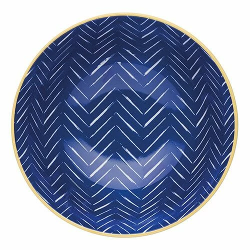 The Blue and Turquoise Embossed Bowl is beautifully made and has a bright and cheerful embossed turquoise and blue chevron pattern, divided with a contrasting yellow rim.