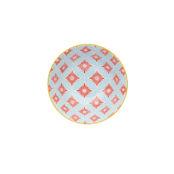 The Light Blue Detailed Ceramic Bowl is beautifully made with an embossed light blue exterior and a blue and red geometric interior, bringing a unique twist to any tablescape.