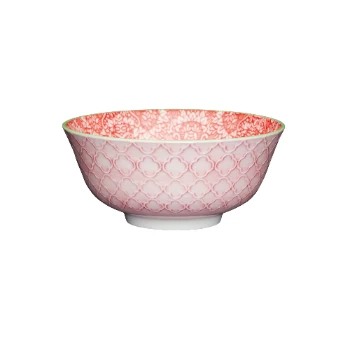 The Red and Pink Ceramic Bowl is beautifully made with an embossed pastel pink exterior and red floral interior, bringing a unique twist to any tablescape.