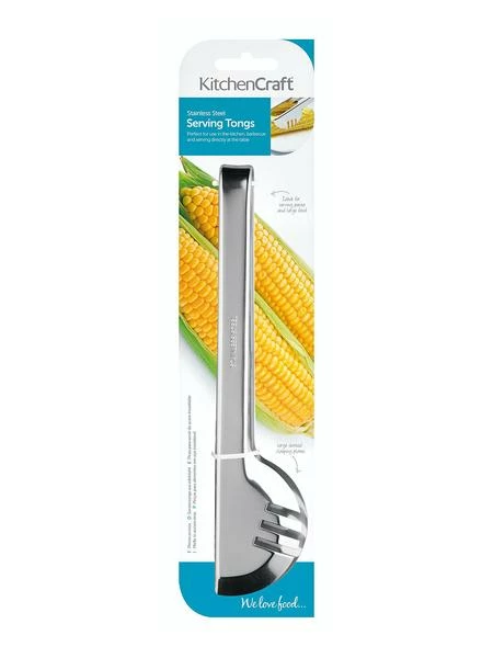 Dishwasher safe 12 month guarantee Size: 24cm (9½”) You’re looking at the Stainless Steel Deluxe 24cm Serving Tongs from Kitchen Craft. Versatile stainless steel food tongs in a stylish design, suitable for cooking and also serving at the table. With large slotted clasping plates, the tongs are ideal for serving pasta, particularly spaghetti and tagliatelle.