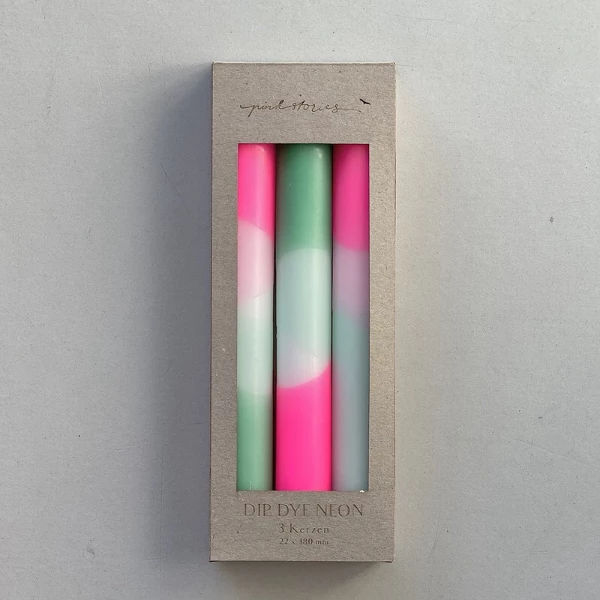 Be the first to review “Pink Stories Dip Dye Neon Candles – Peppermint Clouds, Boxed Set Of 3” Cancel reply