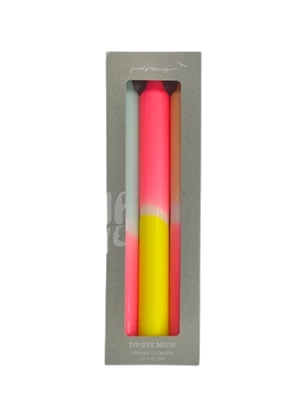 Pink Stories Dip Dye Neon Candles – Peppermint Clouds, Boxed Set Of 3