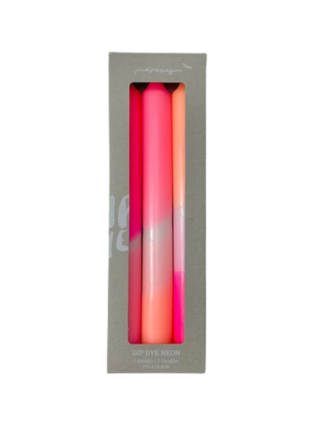 Pink Stories Dip Dye Neon Pillar Candles – Set Of Three – Sea Views