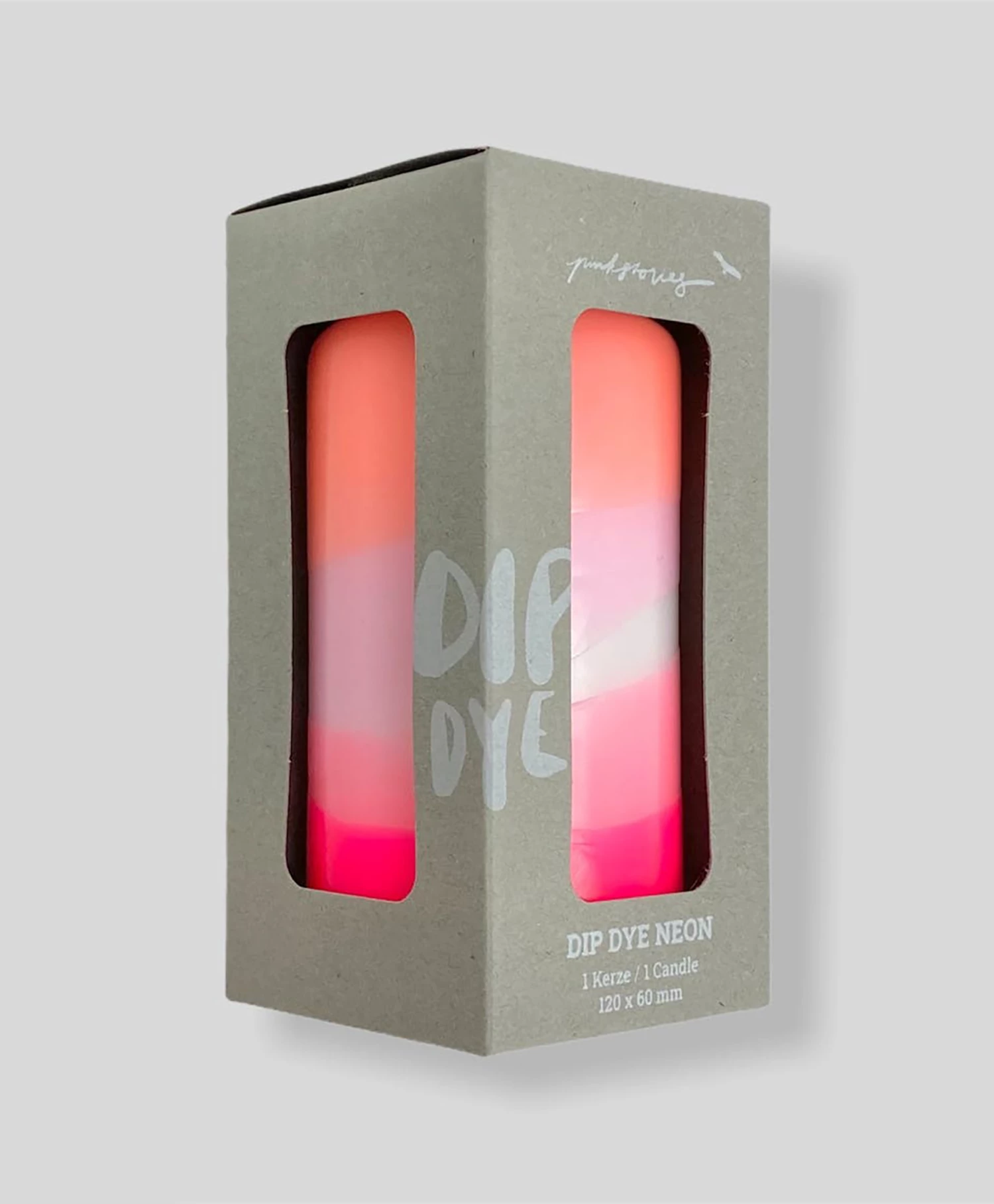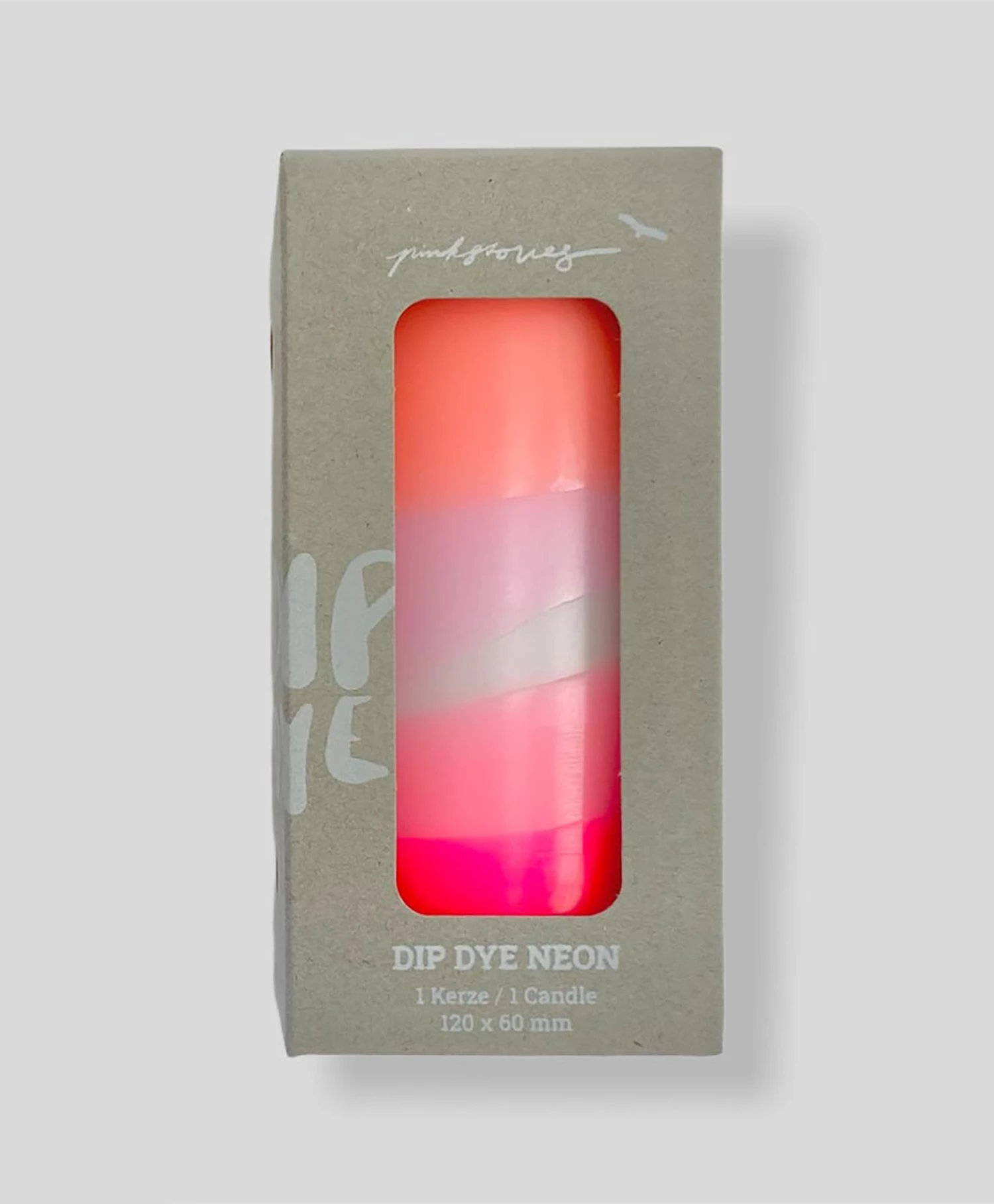 A lovingly hand-coloured pillar candle in a neon look. The colours stay the same, the patterns vary with each candle and make them special.Dyed in cooperation with social institutions in the beautiful Alpine foothills.RAL certifiedLow soot and low emissionsWithout palm oil100% vegan100% made in Bavaria Dimensions approx. 120 x 60 mm Materials Carefully selected paraffin and regional production in Bavaria.