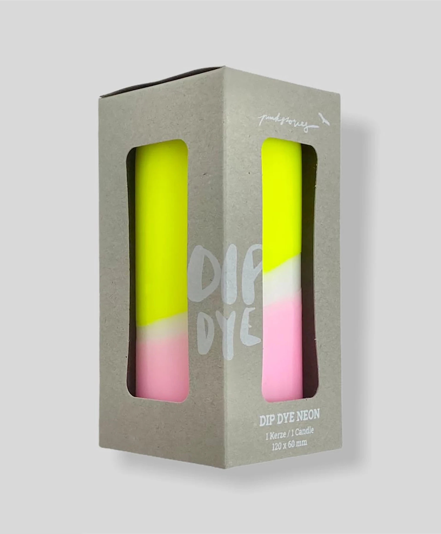 A lovingly hand-coloured pillar candle in a neon look. The colours stay the same, the patterns vary with each candle and make them special.Dyed in cooperation with social institutions in the beautiful Alpine foothills.RAL certifiedLow soot and low emissionsWithout palm oil100% vegan100% made in Bavaria Dimensions approx. 120 x 60 mm Materials Carefully selected paraffin and regional production in Bavaria.