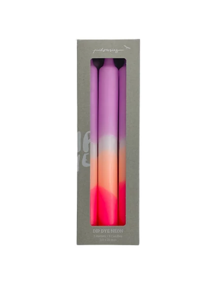 Pink Stories Neon Dip Dye Dining Candles Trio Rainbow Kisses