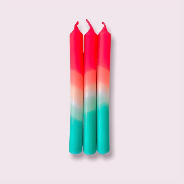 Pink Stories Dip Dye Neon Pillar Candles – Set Of Three – Sea Views