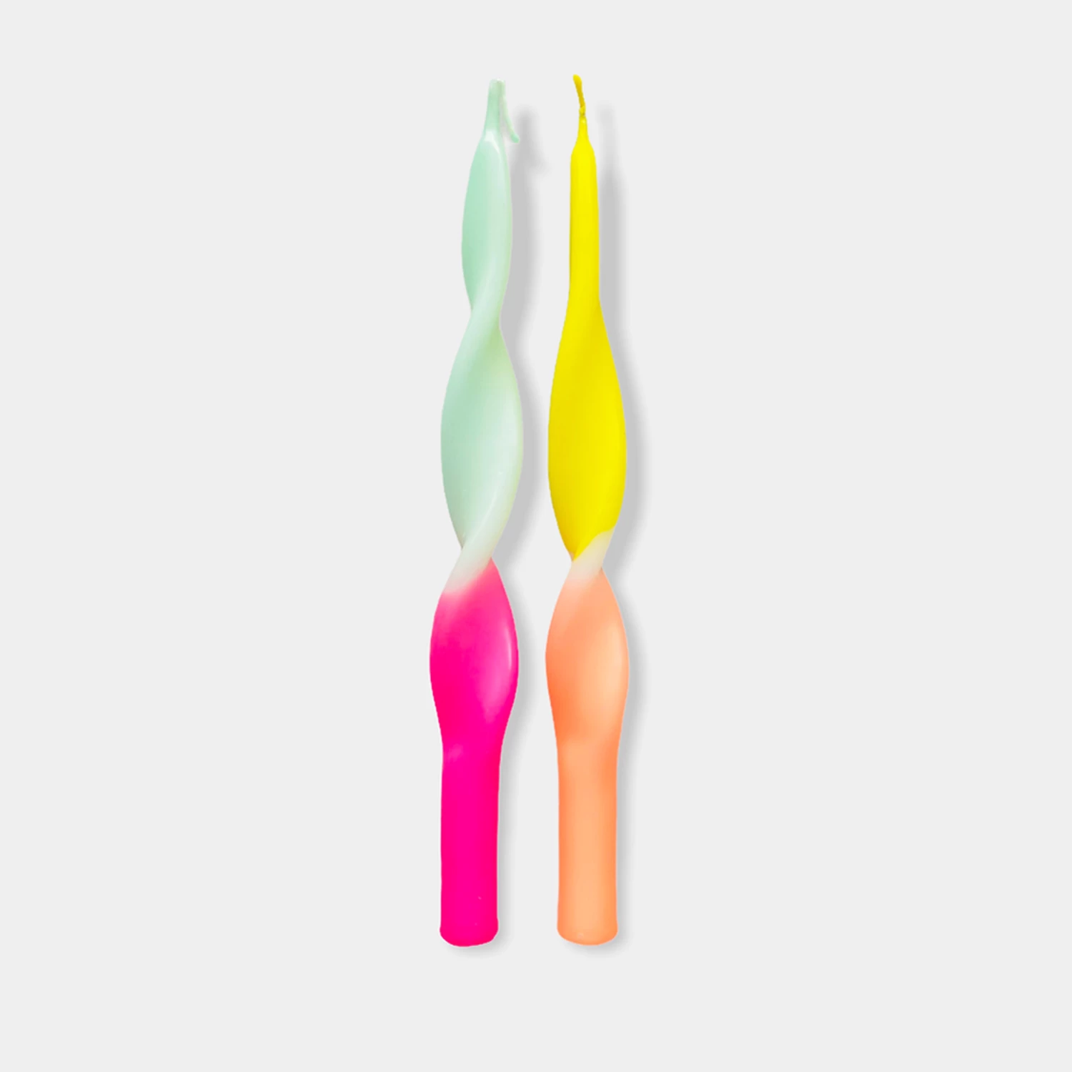 Dyed and twisted in the beautiful foothills of the Alps, these lovingly vibrant hand-colored twisted candles look amazing.