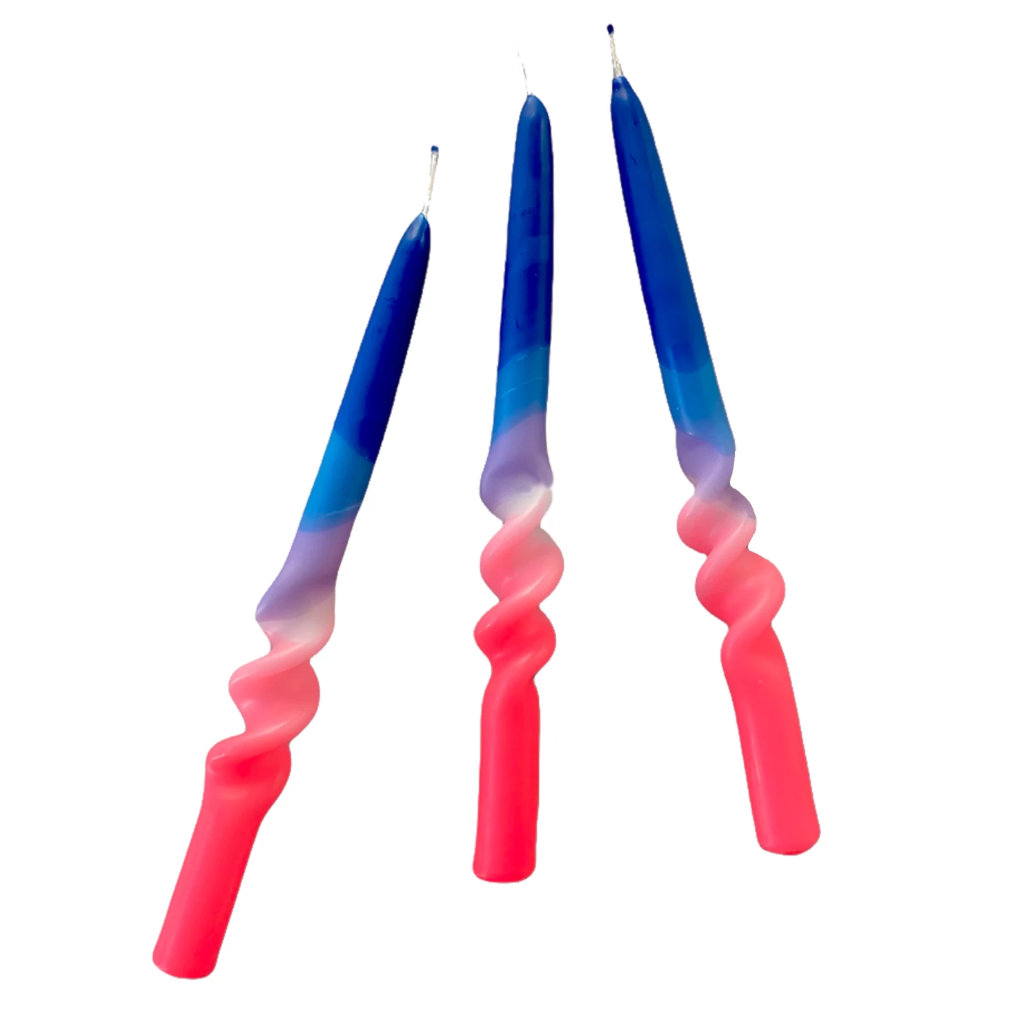 Dyed and twisted in the beautiful foothills of the Alps, these lovingly vibrant hand-colored twisted candles look amazing.