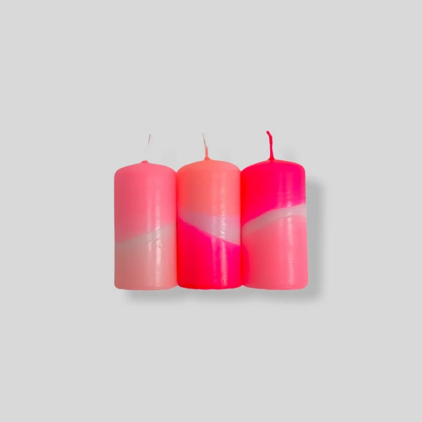 Pink Stories Dip Dye Neon Pillar Candles – Set Of Three – Sea Views