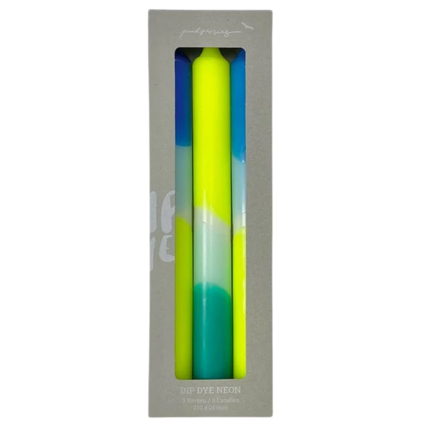Gorgeous set of 3 dip dye candles. Each hand dipped to give a unique pattern. 100% vegan Paraffin wax RAL certified Made in Bavaria