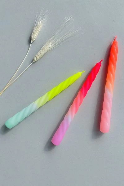 Oh boy! We are loving these beautiful twisted candle sticks. Perfectly dip dyed in the foot hills of the Bavarian Alps, each candle is unique with its patterns but the gorgeous, bright neon colours will always be the same! Dimensions: 230 x 23mm RAL certified Low soot and low emissions 100% vegan Made in Bavaria