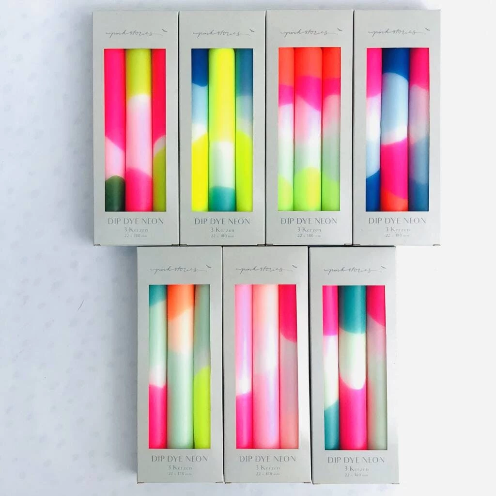 These gorgeous neon candles will bring colour and energy to any table or candlelit festivity.We love the bold colours and dip dye design.