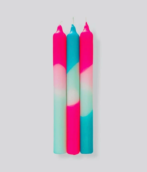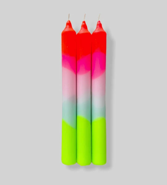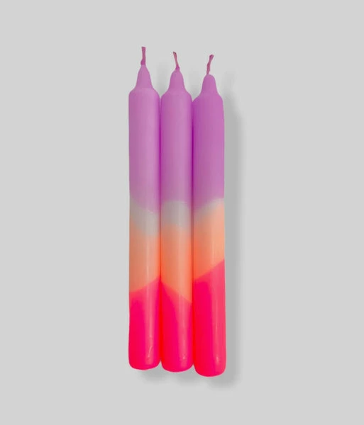 Pink Stories Dip Dye Neon Pillar Candles – Set Of Three – Sea Views