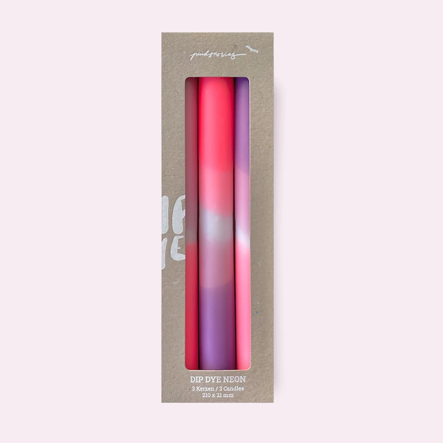 Pink Stories Neon Dip Dye Dining Candles Trio Rainbow Kisses